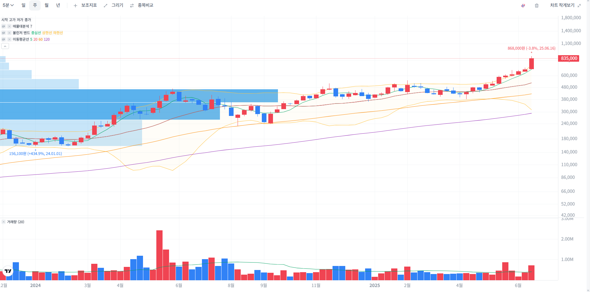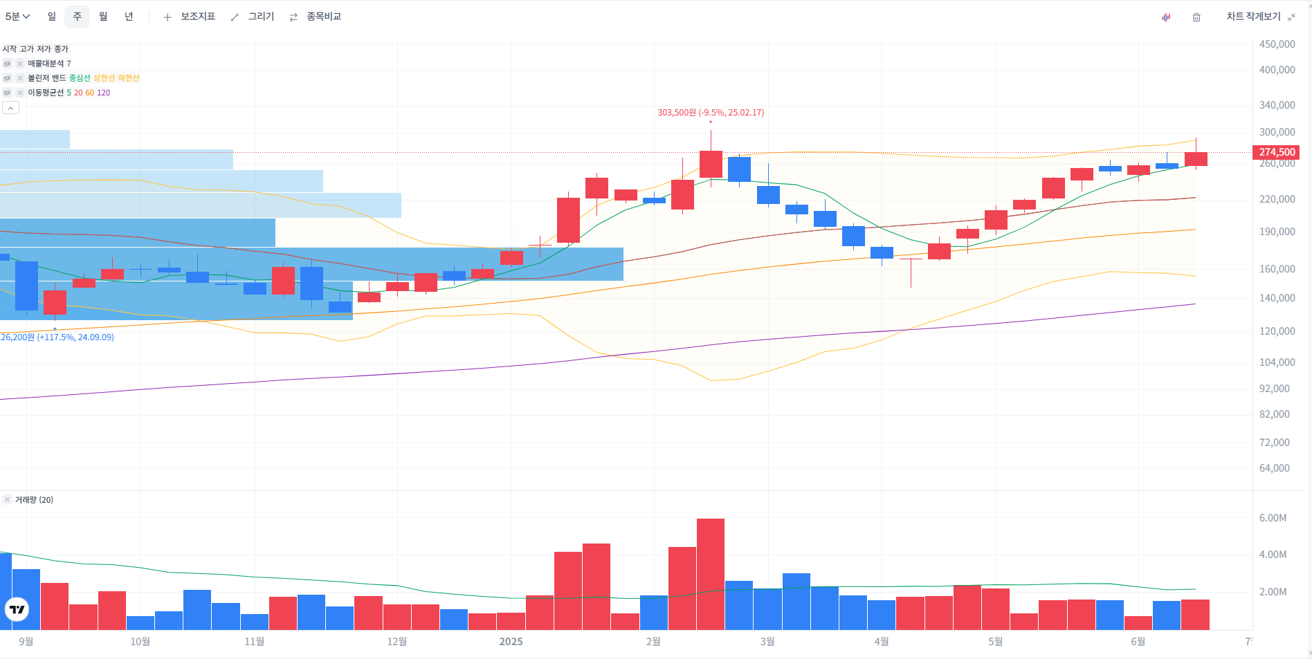 - 146,800원 저점 → 275,000원 고점 약 87% 상승