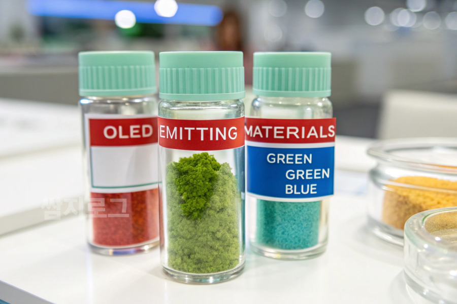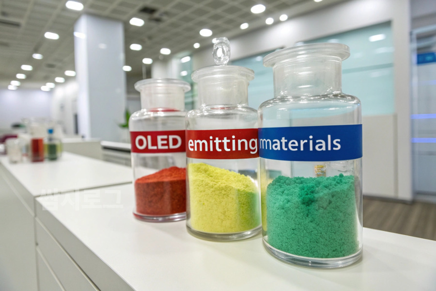 주요 제품으로는 Red·Green·Blue 발광재, 호스트, 도펀트 등 다양한 프리미엄 유기 소재가 있습니다.